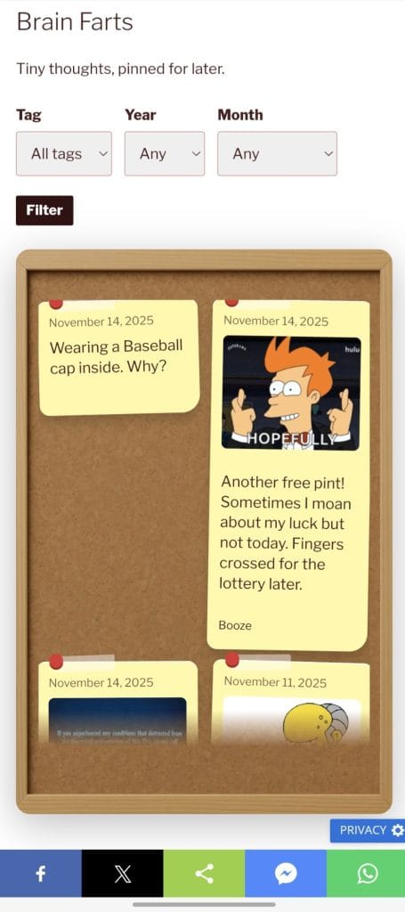 So I decided I wanted to move away from Twitter and Bluesky completely and host my short posts, or brain farts as I’m now calling them, right here on this blog.